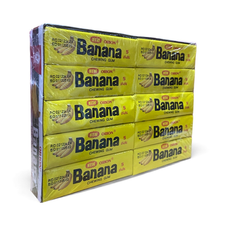 ادامس موزی اوریون اصلی بسته ۲۰عددی کارتن۵۰بسته در سه طعم موزی توت دارچین